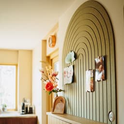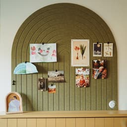 Use the Wall Arch as a decorative statement on the wall or as a functional notice board for notes, cards, or inspiring images. Thanks to the lightweight material and self-adhesive back, the panel is easy to attach.